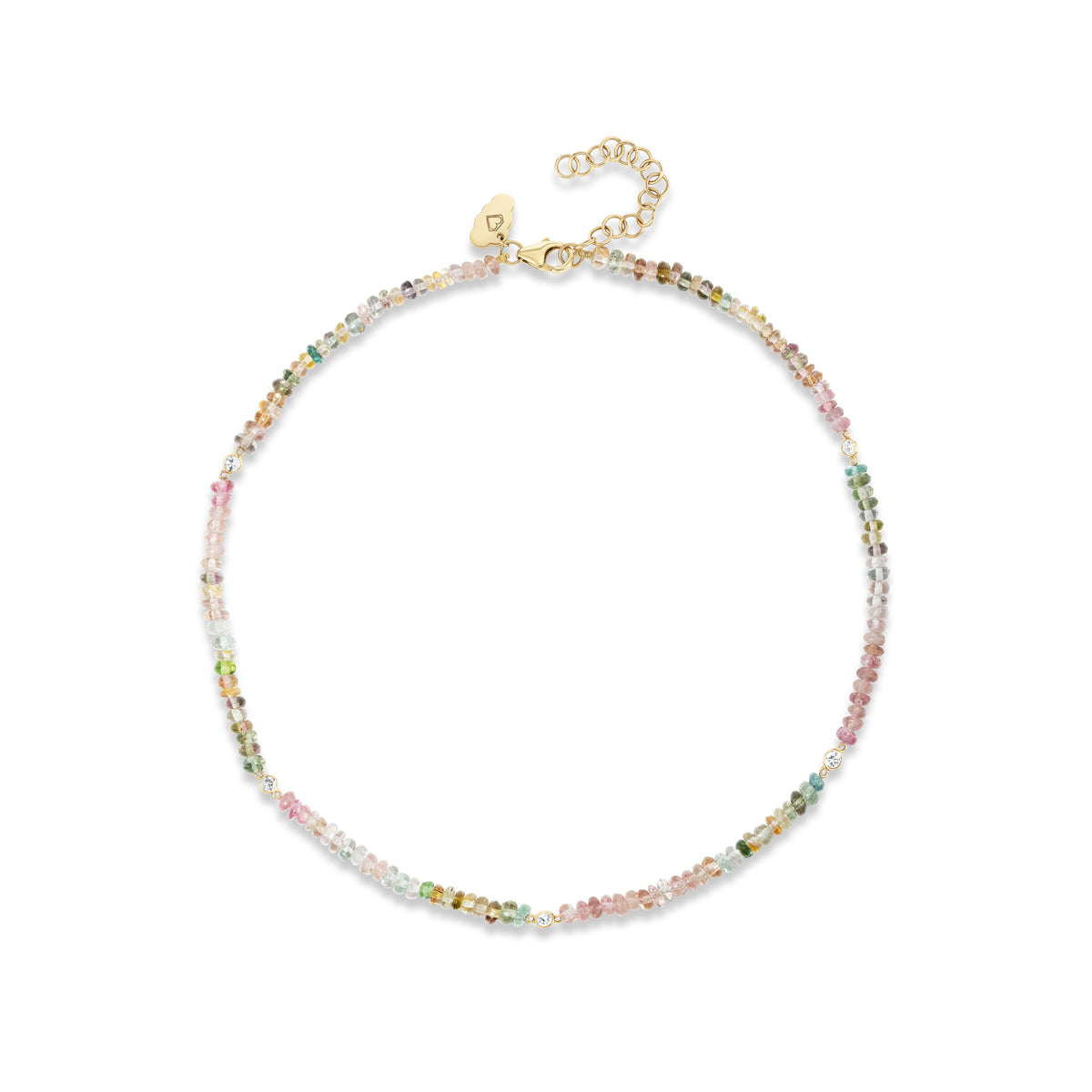 Watermelon Tourmaline and Floating Diamond Necklace