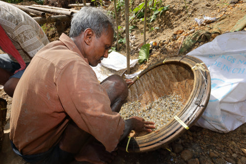 For precious gemstones, the rubies and sapphires that I use come from Sri Lanka. Sri Lankans are very traditional people and the Sri Lankan government fiercely protects them with strict mining laws. The miners and their families must abide by strict mining rules. Gem mining follows traditional Sri Lankan methods, mining by hand, which is a method that has been used for centuries. Many gem mines are owned by families who have owned the same mine for multiple decades. Families are seen praying before moving onto the next layer during the mining process This is an age-old ritual. Additionally, when a gem is found, a huge celebration occurs. There is so much pride in their work and tremendous respect for the elders in the family. And when the elders pass on their knowledge to the next generation... well, that is an enormous gift.
